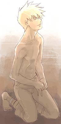 さぁ頑張って毎日更新。さらにオリジナル風味になってしまいました。 漫画のカカシは陣内孝則に似て、昨日のは織田裕二に似てしまったような気がするんですが(目の錯覚かと…)次は真っ白な裸体なカカシを描きたい。 腰を何度もツっています。 腹もつります。 先日なんか首をつりました。すごいかも。 運動不足でしょうか。(だろうねえ…) 仕事場で腰を抑えて「(うおぉう!)(声にならない叫び)」ともだえ苦しむ様は我ながらとても情けないのです。あいてて。 飼っているわんわん(シベリアンハスキー)の頭のてっぺんに天使の輪みたいな、王冠みたいな産毛がちょこんと生えてきました。耳と耳のあいだに、本当に円を描いているのです。まるく。白い産毛で。久しぶりにみたなあ。その頭で「遊ぼ?(動物のお医者さんみたく)」と首をかしげられると時間もないのにかまいたくなるから困ります。 オエビに登録してきました。 ペンタブ練習中。練習中。 シリル絵一枚up。前サイトのものですが。 2月10日 イルカ先生考え事ですか? うるさいなあちょっと黙っててくださいよ。