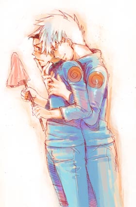 オエビ更新更新。 リンク整理しようとしたらもう6件くらい追加したい勢い。 それで、他ジャンルも移動して別サイトを作りたい気持ち。 どうしよう。 工場長に漫画を見られました。 用事で外に行っていて、帰ってきたら机の上にカカイルな原稿が表になっておいてありましたとさ。 ぎゃー。 実録だったから笑ってすませました。 ああ、良かった。 というようにサバイバーな日々を送っています。 2月23日 漫画→ 突然14コマ劇場 そこはかとなく色気もののような…。 妹ちゃんのお達しで11時からネットできなくなります。今だけですけれど。12時になったら帰ってきます。 WJ気になってデスノ読んでみたんですが、Lがすごいことになってしまいましたねぇ。 というか、しばらくみたいうちにライト、顔が、激烈凶悪になってました。 あれは悪そのものな顔よ、ねぇ奥さん。…恐い。 これからどうなるんだろう。多分生き返るとは思うのですが。 時間あったら絵もUPします。ではでは。 2月22日 ![]() オエビこっそり更新しているんでよろしければ見に来てやってください…しょぼぼびっちな感じですが(謎)見つけた――!!ようやくずっと探していた素敵サイト様を、よ、ようやく見つけました…ていうか、見つけるの遅すぎ…超有名サイトさまでした…(当然…)もちろんリンクしますよ!!百のお題が激萌えしたサイトさま。 サリマンってなんかに似ているなあと思ったらサルマンでした。 そうだ、なにかに似ていると思ったんだ。 妹と爆笑してました。こんなことで。 あと二件ほどリンク追加します。 どっちも私の生活になくてはならない存在でございます。 というかリンクは膨大なことになると思います。 自分用便利ブクマにする予定なんで… 2月21日 ![]() ハウル絵を二点追加…同じページです。まだ増えますよ… NARUTO、イルカ先生でていましたね!!!!(嬉)笑顔がvvvvらぶだ…っ 相変わらずナルトと仲良さそうで…カカシはどこ??? ガアラの肩の筋肉のつき具合に萌えましたよ。 敵忍の鳥のデザインってどこからひっぱりだしてきたんだろう…不思議なデザインの鳥。 芸術は爆発だとか言っているし、岸本先生の完全オリジナルっぽいですね。 2月20日 ![]() ハウル見ましたよ。 すさまじい色彩に圧倒…ああっ!すごい。 これで、監督60代…??御歳を召しているのにすごいイマジネーション。あっぱれだなあ…。 というかサリマンカッコイイ…強い。強いおばさん萌え。カッコイイ…惚。 妹からはすごい不評でしたがサリマン。私はファン。。 西洋モノなんで、キャラクターにもっと西洋風な仕草がみられるかと思ったんですが、いつもどおりの宮崎アニメの動きでしたね。作る前、「戦争モノにする」って監督言っていましたが、原作は全然戦争っぽくなかったのではあ?という感じだったんですが、こんな感じでしたか…動く城も軍艦も兵隊さんもオモチャみたいな(子供的というわけではなく)感じで少年向けですね。 帰りの車の中で、ずっと「ハウルかっこよかったね〜vv」といい続ける姉妹。 ラストは泣きましたよ…姉妹揃ってね。 コンテンツにハウル絵色々UPしましたよ。 …ていうか増える…確実に増える…。 …じ、時間をください。 2月19日 小説UP。やりたいやりたいと思っていたので。日記に。小説描くのも一年ぶりかな?…散文みたいになってマス。 日本語って難しいですね。国文系の大学卒業したのに…まあ単位ぎりぎりでしたから(中国語でなんとかもった) かなーり自分設定でかっとばしてます。楽しかった…。自己満!な感じですが。 手直ししてコンテンツにUPしたいんですけど。 四コマ漫画もそのうち続き描きます。 小説→Leison D'etre (レーゾン・デートル) 人減りましたね…30切ったらオリジ力入れようと思ってたんで(馬鹿正直に告白) カカイル好きなんですが、やっぱりカップリングモノは難しいですね…。 実は、このサイトは勢いで作ったものでいつか物置になるだろうと思っていたのですが。 コンテンツはともかく、日記絵は最初の三枚くらいしかまともに自分で納得できるカカイル描けてないんですよ。 絶対言うまいと思っていたんですが。 それでもだらだら続けてたんですが、ちょっとオリジやハリポタもやりますね…それではそれでは。 多分まだ更新だけはしていると思います。カカイル大好きなんでvvここはひっそりサイト… 2月18日 深海 ![]() AJIKOって独特ですね…聞いていると頭がぼうっとしてきますよ。珍しくロックでない。 どんどん消去してますね…。 そしてちょっと傾向が変わってきています…カカイルから遠いところに来ている気が…ああっ(泣) この人はブルーのイメージが強いです。あと緑と茶色… カカシは白か灰色。 ふらっと立ち寄ったお店で可愛いイルカのガラスの根付発見…即買い…寒いことしてます。あは。(汗) 本物のイルカっていうと昔千葉のシーパラダイスで見たっきりだなあ… 水に濡れてきらきら光って綺麗だったなあ(うっとり。別の意味でもうっとり←オイ) 私は魚