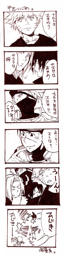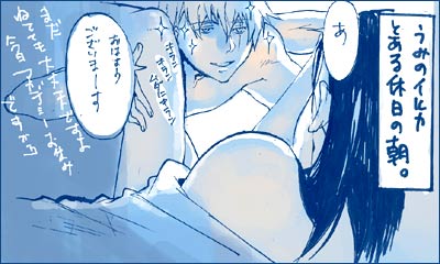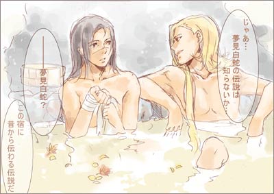 イブキと仲良くお風呂なイルカ。 戦場で出会ってイブキに気に入られ、温泉宿で偶然再会した二人。 なかなか里に帰れないイブキのために温泉で木の葉の里の話をしてあげるイルカ。 イルカはここで初めて「夢見白蛇」なる妖怪について話を聞くことになります。 カカシの姿が見えないようですが、彼は温泉で素顔を見せられないため部屋からでてこないのです。 そのため深夜にこっそりくることになるのですが… カカイルやんないでなにやっているんだか… 我ながら変わったコトしてるなあ…みなさんついてきていただけているでしょうか??? そして裸体率が激高デス…まっずう… ![]() それは寒い12月の出来事。 敵に囲まれ傷を負い、部隊は自分ひとりを残し殲滅し、行き場を無くして逃げ込んだ洞窟でひたすら木の葉の援護部隊を待つイブキ… イブキがここまで追い詰められるのはあとにもさきにもこの一回だけ。 暇を持て余し、腐りかけた黒壇の木で何体も仏像を彫るイブキ。 そのなかの一つをお守りがわりに持ち歩くことになるのですが、自分の死期を悟った彼は「夢見白蛇」でそれをイルカに託す。 …形見がわりとして。(この話は明日には続きません) 息抜き… 3月11日 ![]() サイト運営初めてからもう二ヶ月のちょっと… 早いものです…更新頑張ってたらあっというまに過ぎ去りましたよ。(どこか遠い目)。 今日は仕事帰りにふらりと街で遊んできて5000円もする化粧品を買わされました(泣) 確かに肌弱いとは言いましたが…値札をみるんだったっ…!!(激しく後悔…) うぉのれ、人の弱みにつけこむとは… エステのときといい散々な目にあっている私。(←未遂でしたが) 行かないよ?東京なんて!イベントだったらはあはあ言いながらいくけどさ! 友人がどんどん怪しい存在に見えてくる… このサイト…こっそり拍手とかとりつけたいのです。 が、誰からも反応なかったらどうしようとか思うのですが。 ふおー…昨日はルーピン先生の誕生日だったらしいです。 今ネット旅してたら発見しました。 カカイルジャンルでもひそかに人気なルーピン先生(←妄想50%半分本気。ほんとほんとに。) おめでとうおめでとう。ルーピン先生!あなたが大好きだ。 できることならばあなたに花を贈りたい。 素敵に歳をとってください(そして最終巻まで生き残ってください。頼むから!!) 過去HPの絵、コンテンツにUPしました。 カカイルではないんですが、もし興味があったら見てやってくださいませ… 3月10日 ![]() 更新するつもりが寝てしまいました…。時間切れです… おととい、昨日と、すごく暖かくてもうすぐ春なんだなあと実感。 春は恋の季節ですね。カカイルの季節だ(なぜに) 日記絵は今日UPできるかと… 戻 ● 日記7● ● 日記6● ● 日記5● ● 日記4● ● 日記3● ● 日記2● ● 日記1● |