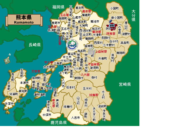 自分の割当県の地図 学生番号02e418 自分の県コードは 43.熊本県です