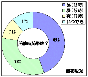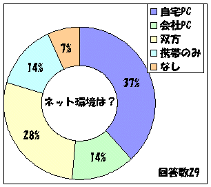 インターネット接続環境は携帯のみの場合はやはり閲覧しない回答が多かった。全体的には参加人数比で見ると、半数の方がネット閲覧可能な環境を持っている。 |
