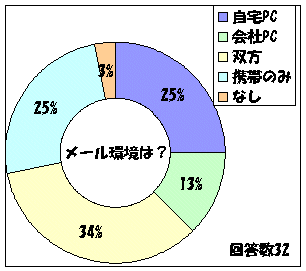 自宅・会社を問わずメール環境をお持ちの方は7割。携帯メールをあわせるとほとんどの方は何らかの方法でメール連絡可能。 |