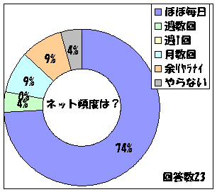 更に回答数が減るが、ネット環境がある場合は、ほぼ毎日ネット接続をされている。携帯のみの場合はほとんどやらない方が多い。 |