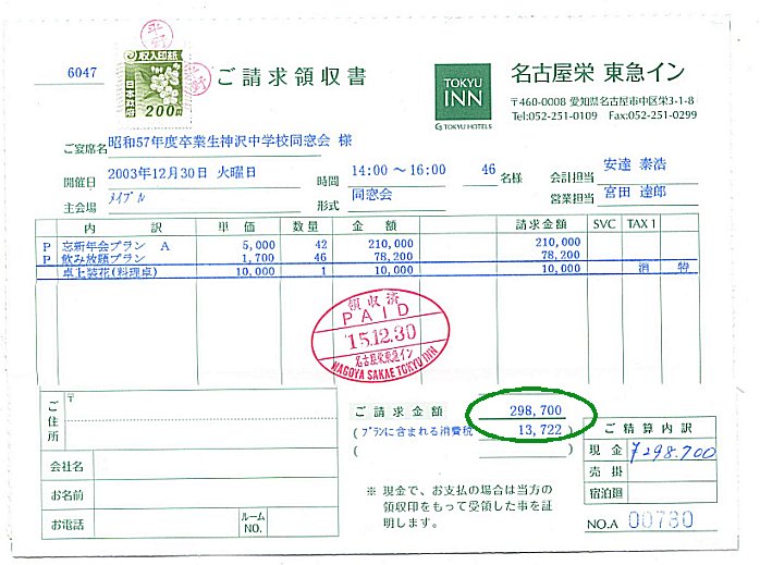 この収益金は次回同窓会の運営に充てさせていただきます。