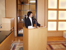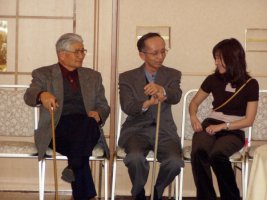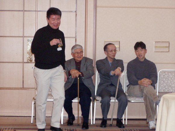 No.20 こちらは、先生を囲んでの歓談、田邉君と花井君。 ああ、泰三。ちょうど席を立った瞬間でした。ナイスシャッターチャンスを逃してしまった。 |