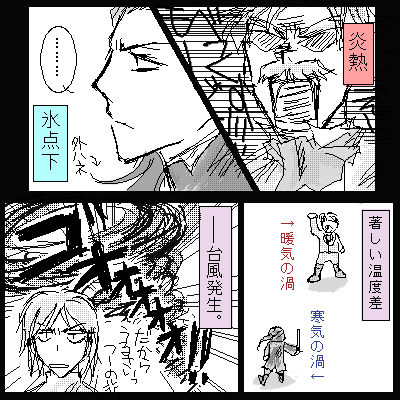 ![]() いしいバルとそーまジャベ。マブ系ジャベはこの後、台風に巻かれてまんまと気絶するがいいさ! |