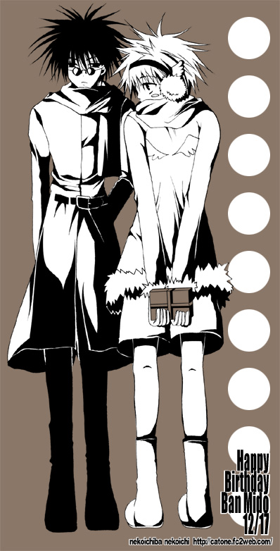 コイビトにプレゼントを渡す瞬間・渡される瞬間・・・vv 銀次のドキドキ感が伝わってくるような・・ はにかんだう・わ・め・づ・か・いvv・・・カワイイよぉv 対して、蛮ちゃんのクールさ! 内心では絶対にドキドキしているのに キメてるんです(笑) そりゃ、もうv 銀次の前では常にカッコイイ彼でありたいんですよねvv サイト様でもタダ見してしまうのが勿体ないくらい、 美麗なイラストをコッソリとロムらせて頂いてたので・・・ ねこいちさんのイラストをGET出来て嬉しいデスvv 小躍り&万歳〜vv・・ですよ〜。。。 ねこいち様、ステキなフリーイラストを 有り難う御座いましたっvv |