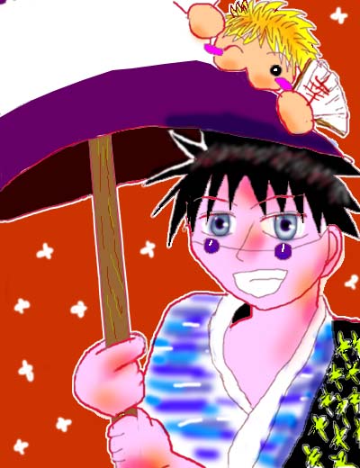銀ようかんさんのイラストを、ようやくGETです♪ タレ銀まわしー(笑) ・・何てカワイイんでしょv 回している蛮ちゃんも、回されている(?)タレ銀も、 とても嬉しそうでイイなぁ〜。。。 蛮ちゃんのあでやかな着物姿と、この得意そうな表情v タレ銀のまんまるな頬や手〜〜v お正月らしい鮮やかな背景も綺麗です。 銀ようかんさんのイラストは、細部までイロイロと凝っていて 構図や状況設定がキマっているトコロがとてもステキですv ご本人様の説明や日記、カキコレス等でイラストについての コメントを読むと、ついついまた見たくなってしまうー。 不思議な魅力ーvv ポップでキュート、ですv 銀ようかんさん、ステキなフリーイラストを ありがとうゴザイマスv |