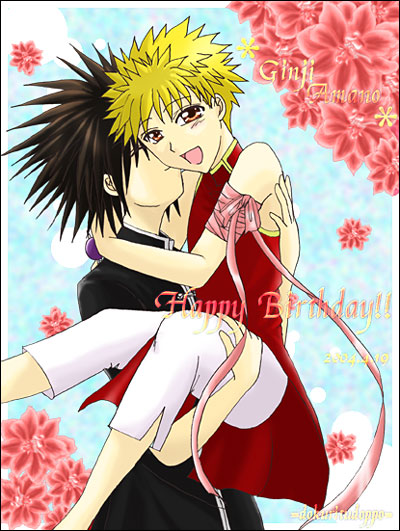今日は4/19、銀次の誕生日だ。 オレの誕生日は特別好きでもないが、銀次の誕生日は祝ってやりたいと思っていた。 あの無限城の中では、そういうことはなかなか出来なかっただろうし…。 「なぁ、銀次。今日はてめぇの誕生日だろ?なんか欲しいもんとかねぇのかよ? お前の一番欲しいもの、言ってみな」 金もないのにそんなこと聞くのもどうかと思ったが、一応…まぁ社交辞令みたいなもんだ。 どうせ銀次のことだから“焼肉、ステーキ、寿司〜!!”とか 食いモンばっか言うんだろうけどよ。 「一番欲しいもの?…う〜ん…」 顎に人差し指を押し当て、空の方を見るような仕草で、銀次は珍しく考えているようだ。 その仕草はなかなかかわい…じゃねぇ・・焼肉とステーキと寿司で迷ってんのか? どっちにしたって金はねぇから、結局はHONKY TONKで 飯を食うはめになるんだけどな‥ツケで(笑)。 「あと10秒で答えられなかったら、ナシだな♪」 「えっ?ええ〜〜?!え〜っと、う〜〜んと・・・」 別に答えを急がせたいわけじゃないが、焦る顔も結構そそ…じゃなくてだ… どうせ食いもんも食わせてやれねぇし、考えるだけ無駄ってもんだろ? まぁ、コイツの場合たまには頭も使った方がいいかもしれねぇけどよ。 「はい、タイムアップ!終了だ。残念だったな、銀次vv」 「…んあ〜…」 ん?思ったより反応が薄いな?もっと“蛮ちゃん、待って! あともうちょっとで決めるから〜!!”とか泣きついてくんのかと思ってたんだが…。 それどころか、妙にニコニコしてやがる…なんなんだ?考えすぎておかしくなったか(ひどい)? 「なんだよ、何も浮かばなかったのか?」 「いろいろ‥焼肉とか寿司とかも浮かんだんだけどね?でも、蛮ちゃん“一番”って言うから…。」 ほら、やっぱり。オレの睨んだとおりだっただろ? 「・・・・で、そのお前にとって“一番欲しいもの”ってのはなんだったか、答えは出てんのか?」 別にくれてやるかどうかはわかんねぇし、金がかかるもんは無理だが “銀次の一番欲しいもの”が気になって、興味本位で聞いてみた。 でも、答えはこのオレの予想をはるかに超えたものだった。 「それはね、蛮ちゃんがずっと一緒にいてくれることだよ。」 さすがのオレ様も一瞬銀次が何を言ってるのかわからなくて、答えることが出来なかった。 「だから、もう貰ってるんだ♪ありがとね?蛮ちゃんvv」 笑顔でそういう銀次につられてこっちまで笑っちまう…いや、にやけてんじゃねぇぞ///! ・・・ったく、コイツは・・・・ 「そーかよ。」 「うんっvv…あ、でも・・・・」 「あ?」 「それじゃあオレ、毎日が誕生日になっちゃうね☆」 ・・・・・・・・・・・・・こっ・・・・・・こいつ、なんつーかわいいことぬかしやがる///?! しかも、はにかんだ笑顔なんかで言いやがるから こっちが困るだろーがっ!!(←ヘタレめ…) でも、銀次の言ったこと‥それはオレにも言えることだ。 誕生日なんて嬉しいと思ったことなんか一度もなかった…銀次に会うまでは…。 オレの一番欲しいものは銀次で、銀次の一番欲しいものはオレってか? …ま、悪かねぇやな♪ 「よぅし、銀次!わかった!!」 「ふえ?何が?」 「今日はいつも以上にたぁ〜っぷりかわいがってやっからなvv」 「え…ええ〜〜〜〜っ///?!」 真っ赤になって焦る銀次を後ろにオレは歩き出した。 ったく、これじゃあどっちの誕生日だかわかんねーだろ? …まぁいいか、オレにとっても銀次にとっても毎日が誕生日なんだしな(笑)。 【おしまい(吐血)】 |