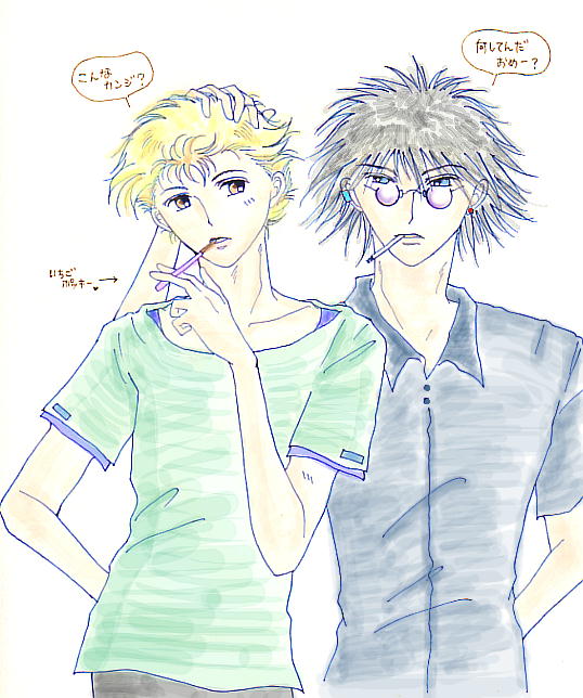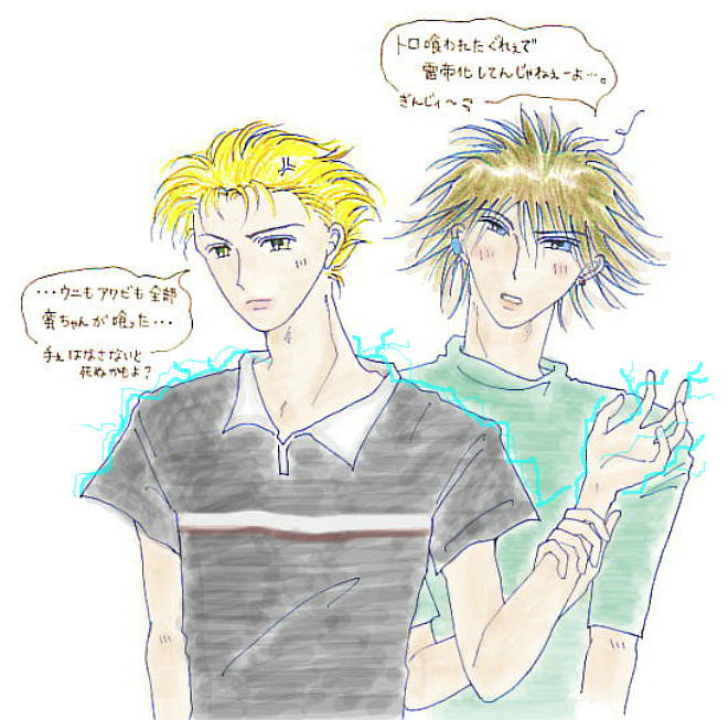 ミニSS蛮銀編の挿し絵、カラーバージョンです。白い服を描くのって、難しいよぅ。 |